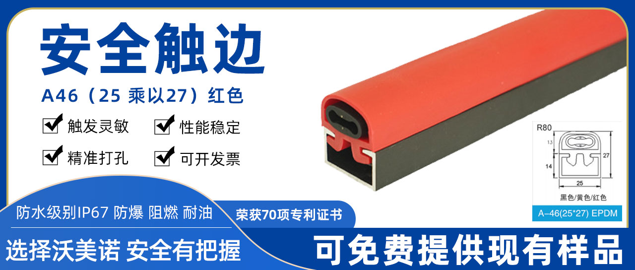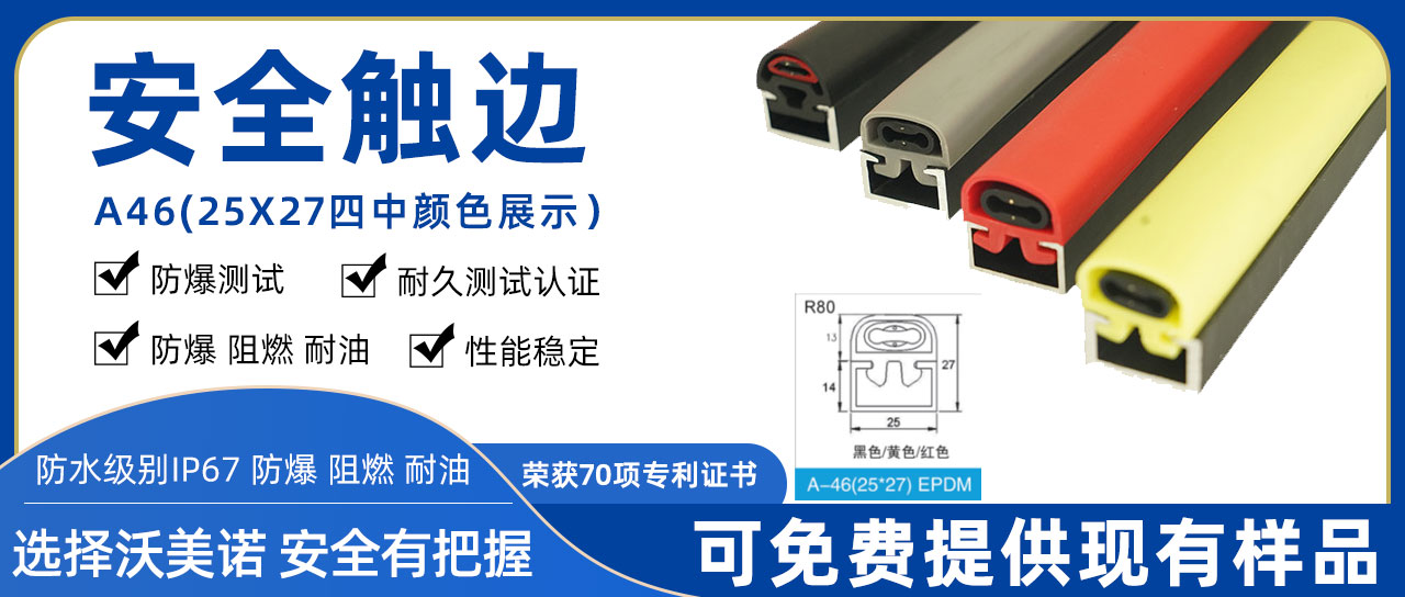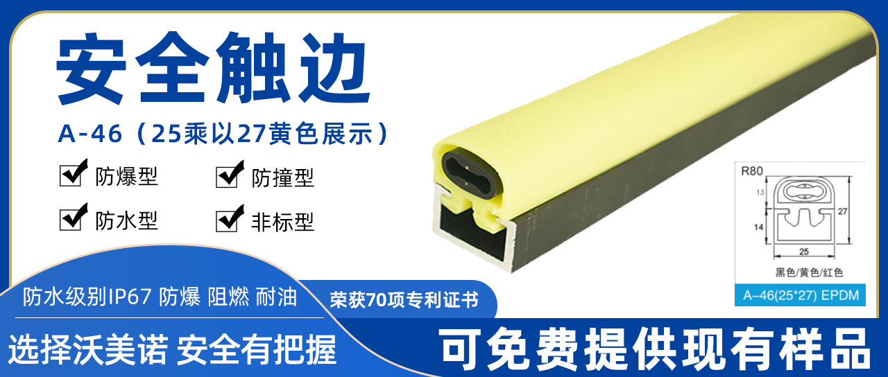 河北沃美諾自動化科技有限公司主要生產:安全觸邊,AGV小車,汽車防夾條,AGV安全觸邊,安全邊緣開關,AGV防撞條,安全邊緣防護,接觸帶,防踏空裝置,導電橡膠,旋轉門配件及各種自動門、工業門、旋轉門橡膠條,品種齊全。安全接觸帶具有導電性能強、靈敏度高、耐低溫、安全性能優越。廣泛用于旋轉門防 夾系統,高端機械防護(安全觸邊、安全碰撞器、安全邊緣、自動挖煤機急停開關)地鐵和動車防夾橡膠(防擠壓橡膠、防夾手)小區刀閘、無人駕駛邊緣防護、收費站、自動車庫門防碰撞。本公司產品在國內多個自動門廠家廣泛應用,質量穩定得到用戶好評!